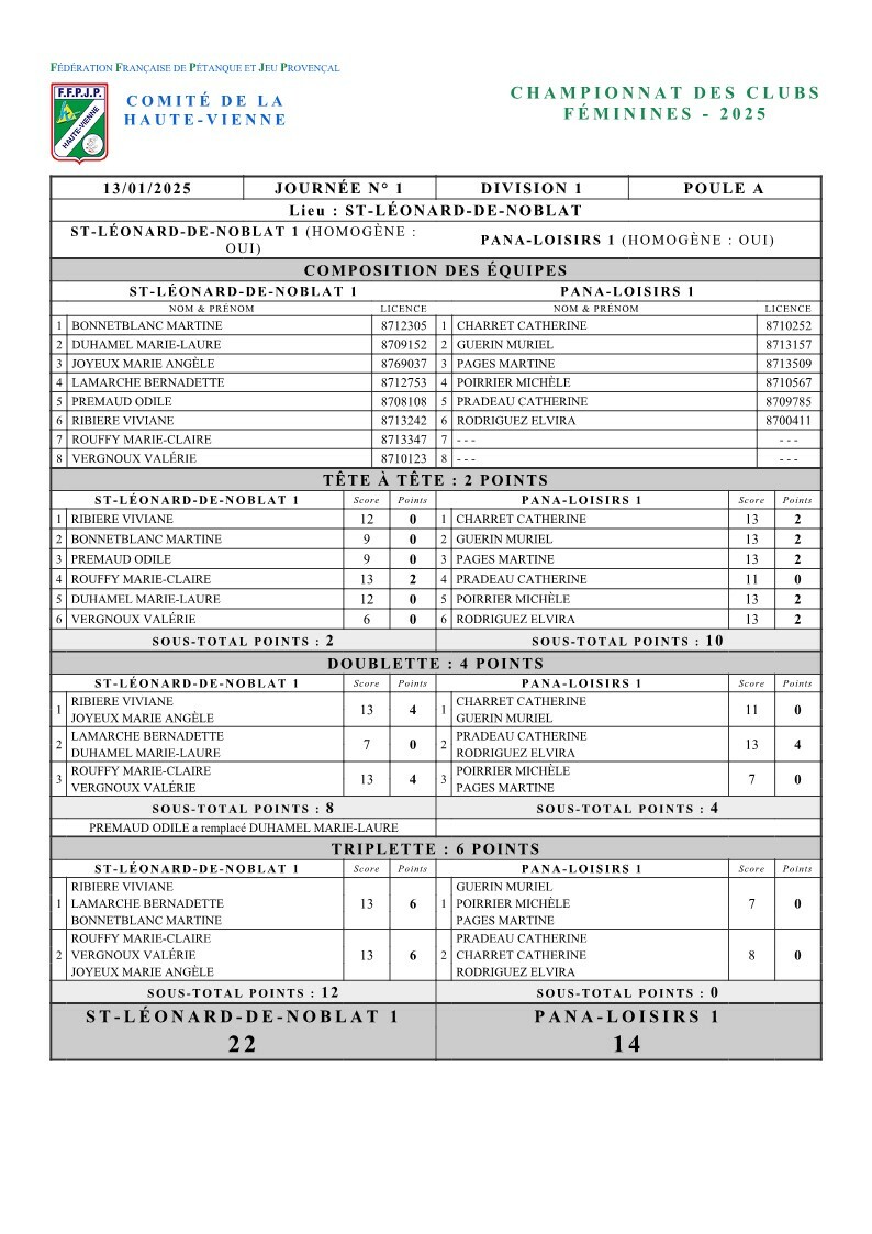 CDC Féminines Division 1 Poule A, 1ère journée / Contre Saint Léonard de Noblat