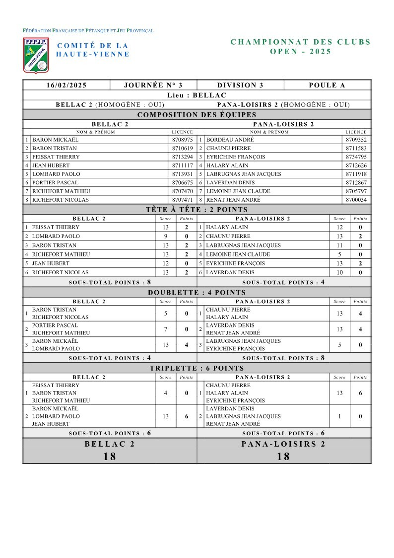 CDC OPEN Division 3 - Poule A, 3ème journée / Contre Bellac