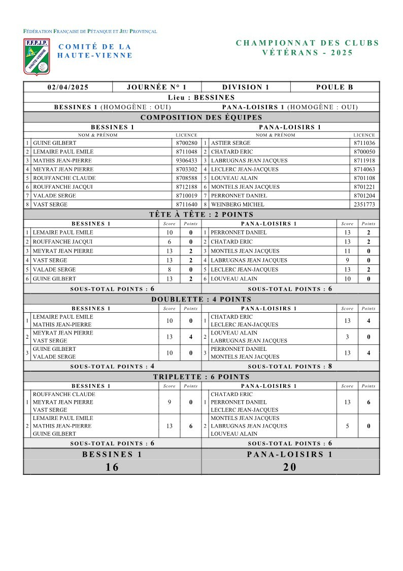 CDC VETERANS D1-B, 1ère journée / Contre Bessines