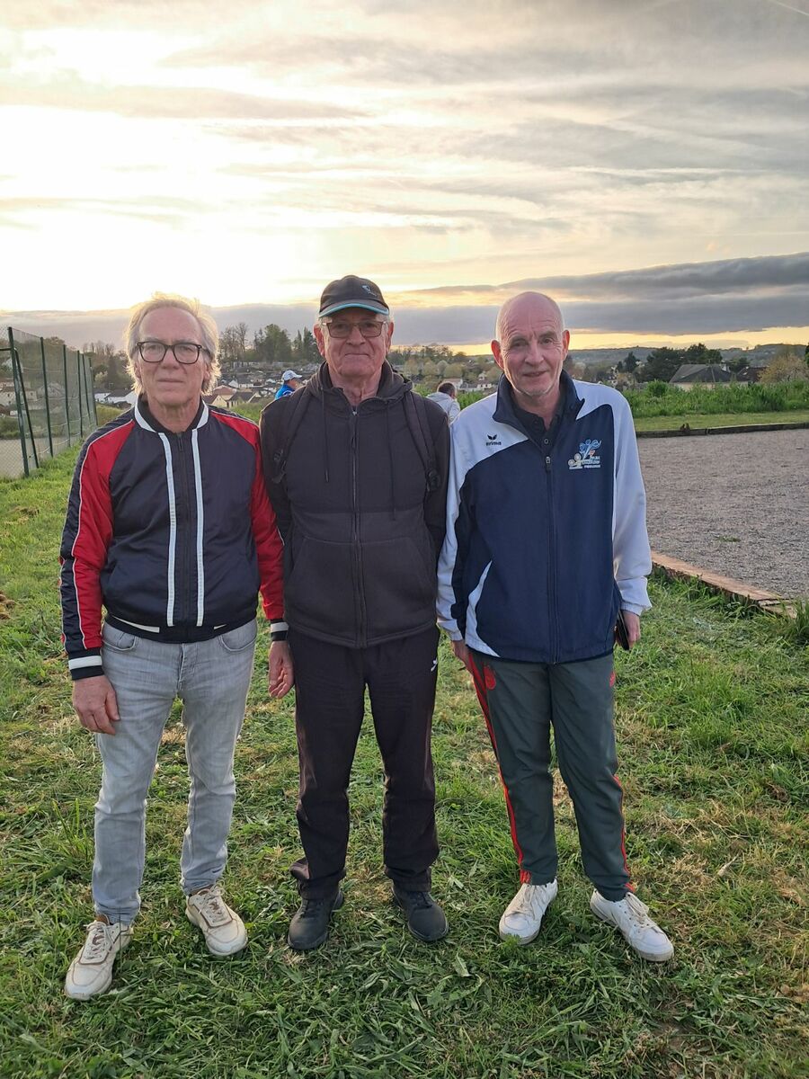 Beau résultat de l'équipe vétérans composée de Denis Amsler, Jean-Luc Beaulieu et Gilbert Lebail qui patage le concours A d' Aixe sur Vienne. Et finale du C pour Cathy Pradeau et Guy Passerieux. Félicitations à toutes et tous.