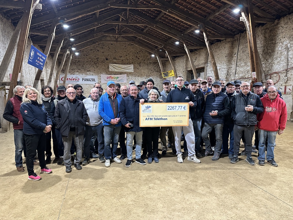 Je suis vraiment fier de pouvoir compter sur le soutien du club de Pana-Loisirs pétanque pour organiser ces 2 concours (16 triplettes x 2) sur la commune de Panazol. Merci aux généreux donateurs, bénévoles et joueurs pour ce montant encore plus gros que celui de l’année dernière, j’espère que pour le Telethon 2024 nous ferons encore plus fort. Merci également à la mairie et aux employés communaux qui réalisent des prouesses pour nos manifestations.